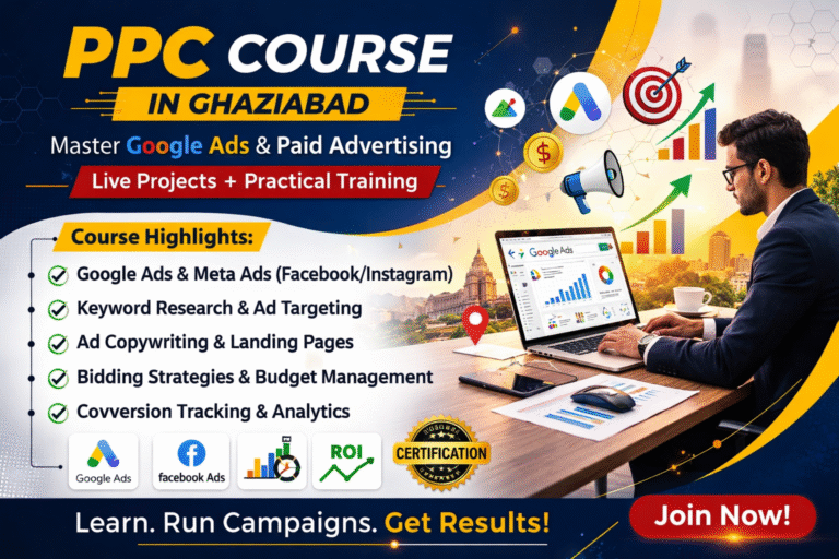 Boost your digital growth with a professional PPC Course in Ghaziabad. This training focuses on generating high-quality leads, increasing conversions, and maximizing ROI through expert paid advertising strategies.